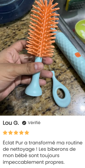 Priorisez la santé et le bien-être de votre bébé avec chaque nettoyage. Éclat Pur est fabriqué à partir de matériaux sans BPA et non toxiques, assurant que chaque biberon nettoyé est sûr et prêt à l'emploi pour votre enfant.